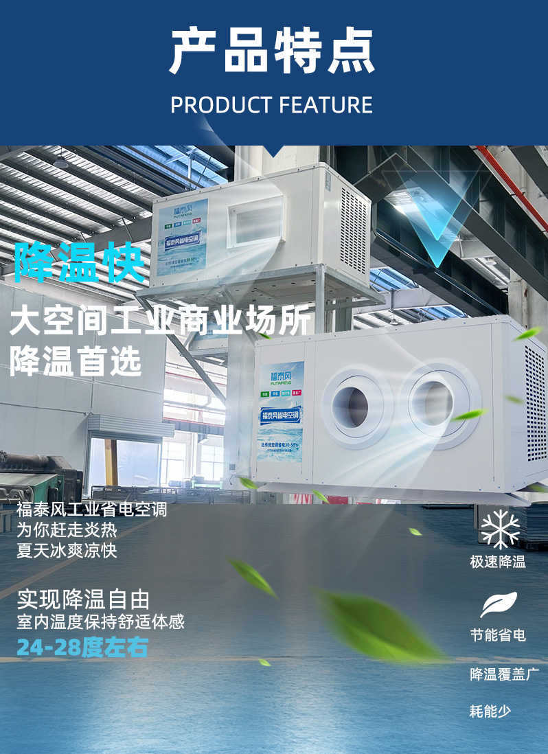 省電同時覆蓋面積比傳統空調面積大3倍,安裝便捷,維護便捷。受到工業商業場所降溫的青睞!
